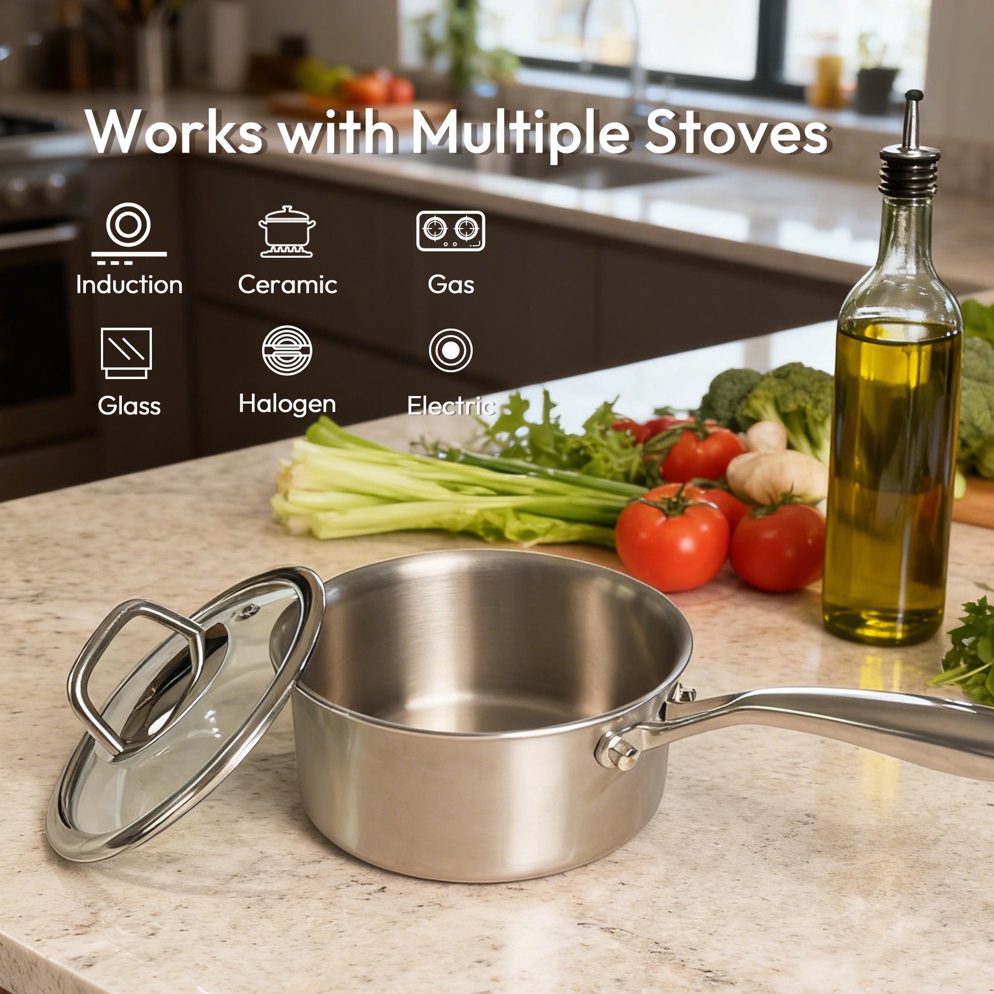 Made from premium tri-ply construction, including a titanium layer, this cookware guarantees superior heat distribution and lasting durability. It’s perfect for all stove types—induction, gas, and electric.