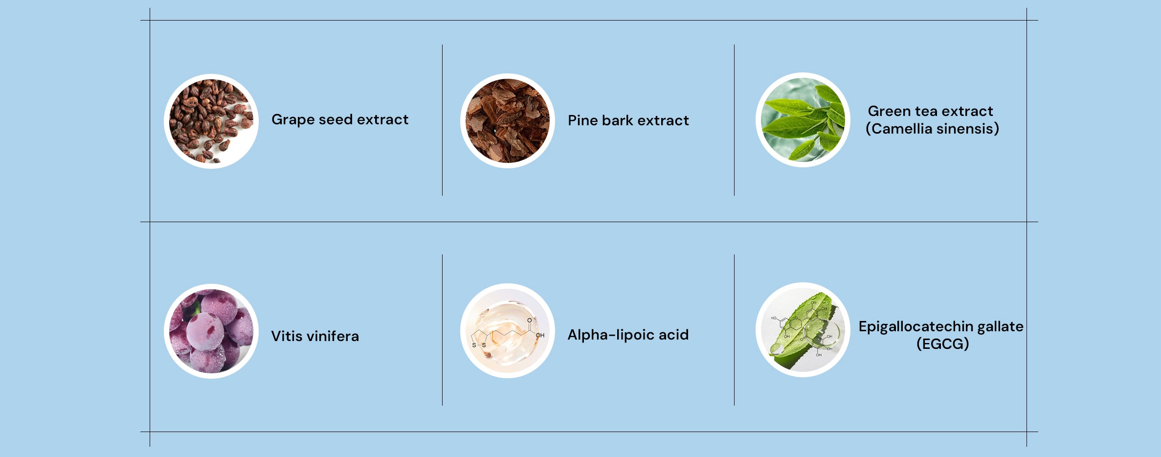 - Contains a synergistic blend of antioxidants including Resveratrol, Alpha Lipoic Acid, and Curcumin.