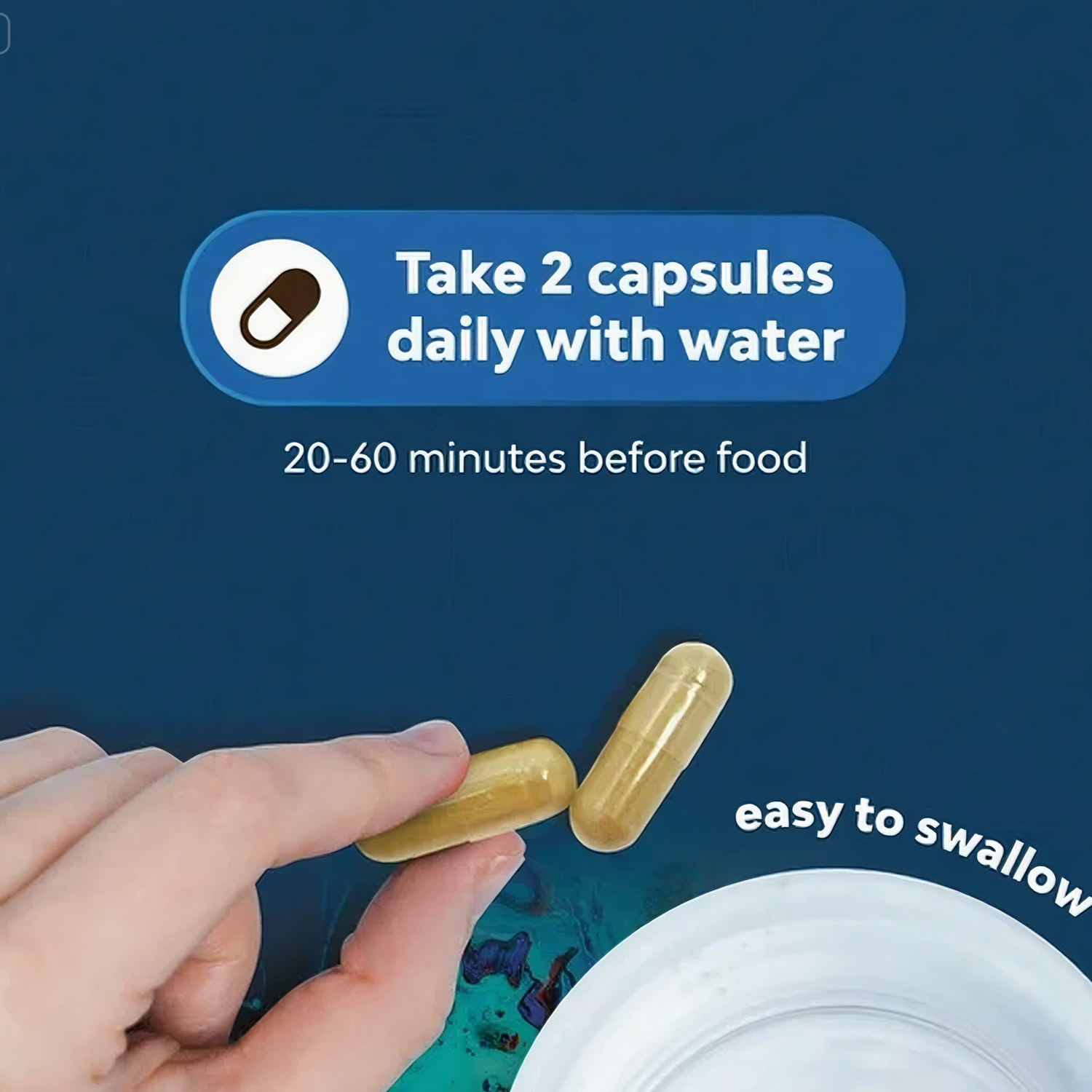 As a dietary supplement, adults take two (2) capsules daily with water, 20-60 minutes before food, or as directed by a healthcare professional.