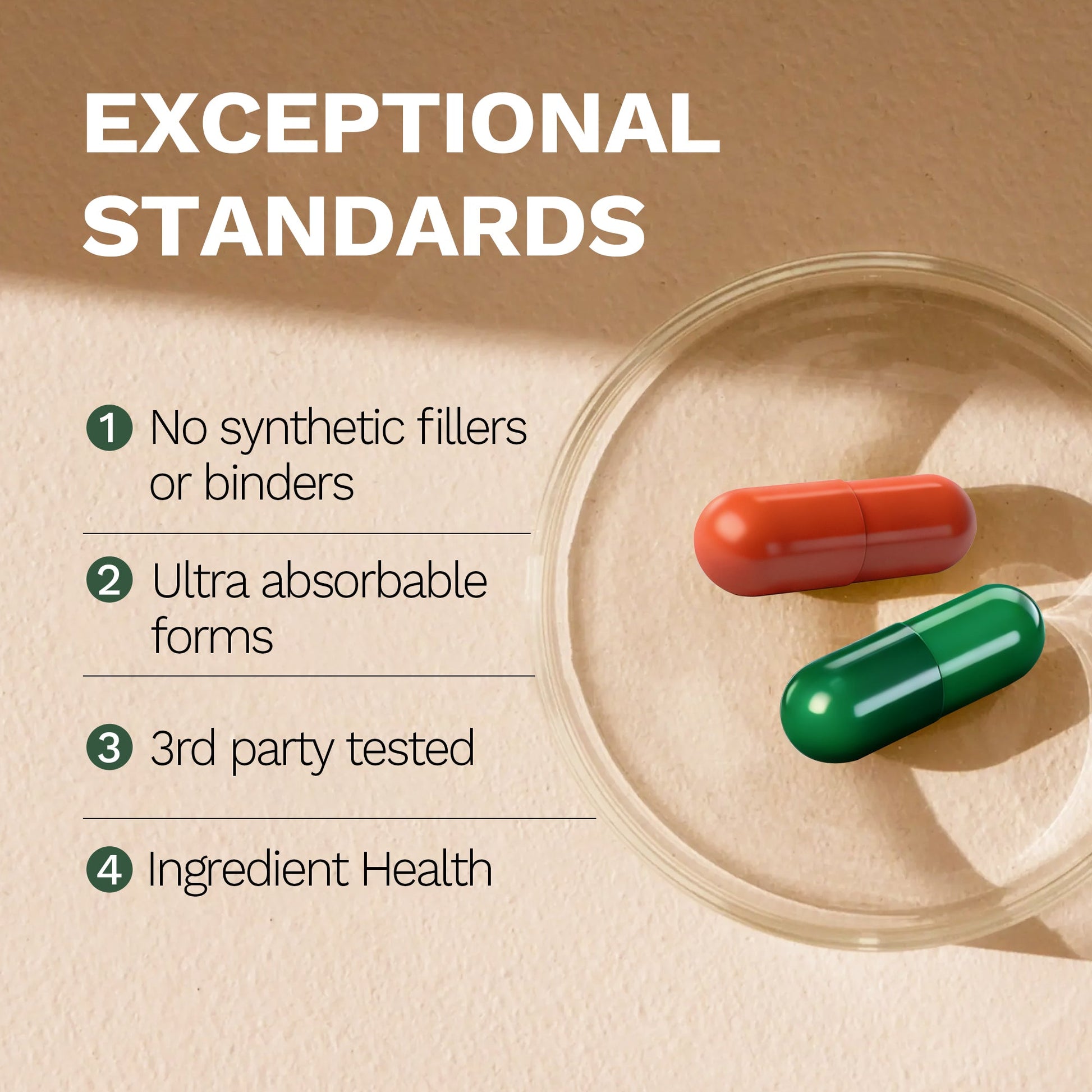 - Green Tea Extract (50% L‑Theanine) — 50 mg (†)