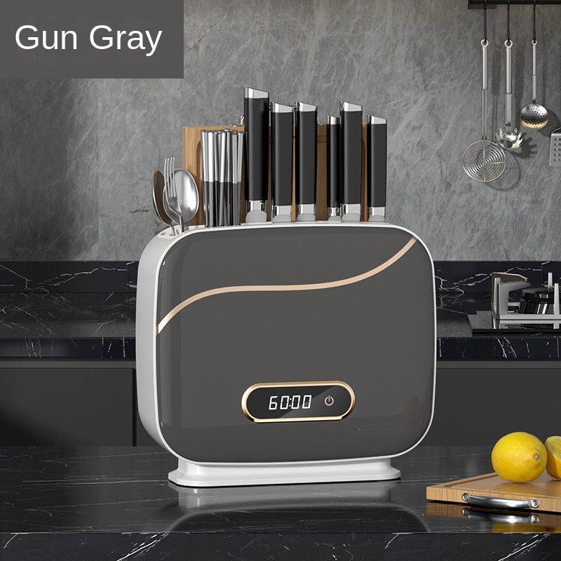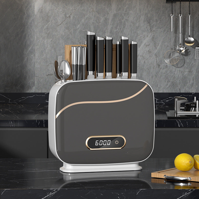 Upgrade your kitchen with our UV Sterilization Knife & Chopstick Holder — a wall-mounted, drill-free solution for organized and germ-free utensil storage.